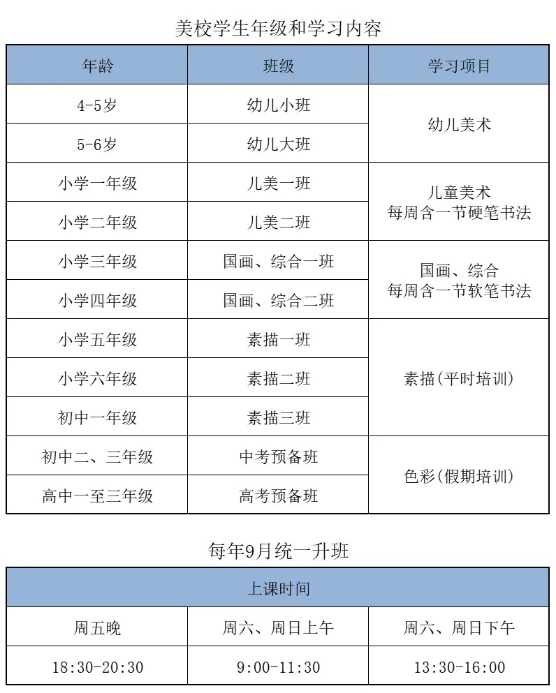 美校将于8月19日(周六)全天、8月20日(周日)上午针对考级进行培训