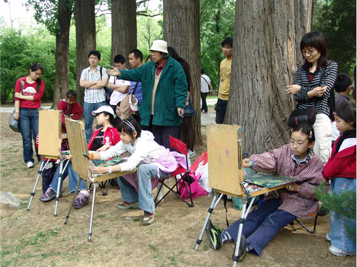 光明美校在注重日常在校受课的同时,更鼓励学生们积极参与户外活动。美校先后组织过多次户外活动,甚至是海外文化交流,拓宽学生们的视野,给孩子们今后的美术道路打下良好的基础。